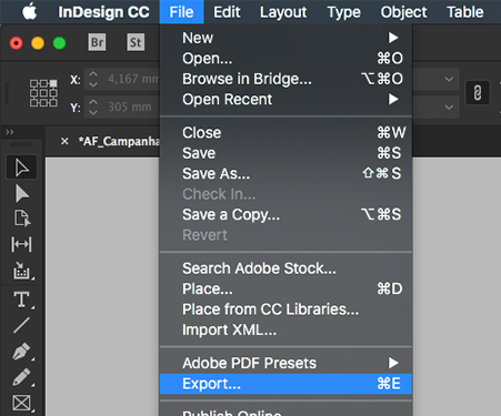 Exporte o arquivo em PDF para enviar para a gráfica