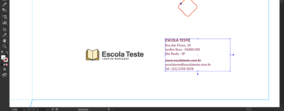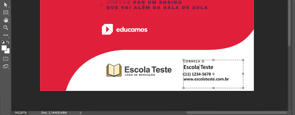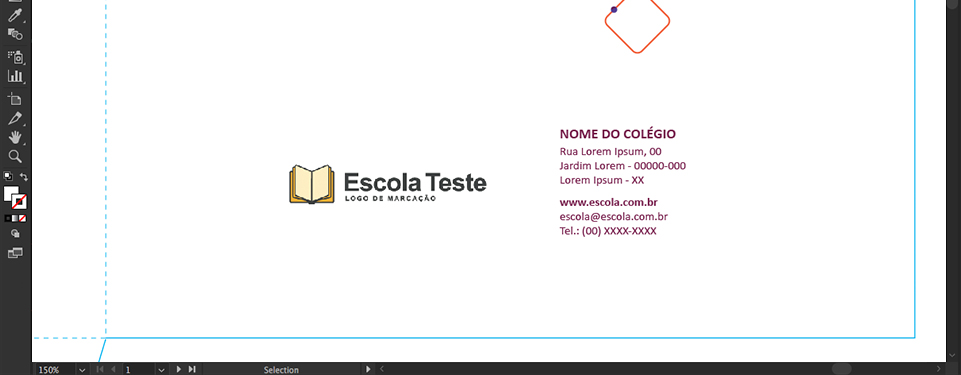 • Adicione somente o Logo e informações de contato da sua escola nas áreas indicadas;