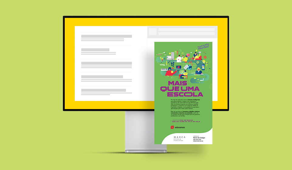 Para que pais e alunos conheçam melhor a nossa ferramenta de ensino, desenvolvemos um material de divulgação que busca mostrar que
