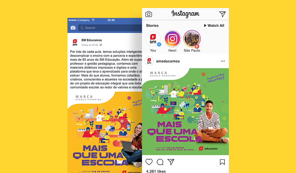 Legenda: Por trás de cada aula, temos soluções inteligentes para descomplicar o ensino com a parceria e experiência de mais de 80 anos da SM Educação. Além de suporte ao professor e gestão pedagógica, contamos com materiais didáticos impressos e digitais e uma plataforma que leva o aprendizado para onde o aluno estiver. Mais do que alunos, formamos cidadãos criativos, conscientes e atuantes na sociedade a partir de um projeto de educação integral que une toda a comunidade escolar ao redor de valores e resultados.