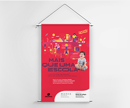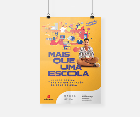 O cartaz é uma peça de bom custo-benefício, que pode ser fixada em diversos locais da escola, como recepção, corredores e espaços de convivência. Também pode ser aplicado em locais parceiros.