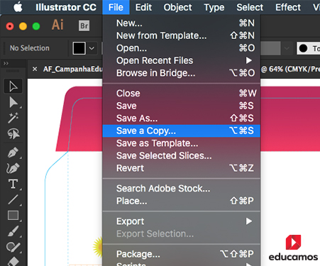 Clique em FILE/ARQUIVO e selecione a opção SAVE AS COPY/SALVAR COMO UMA CÓPIA;